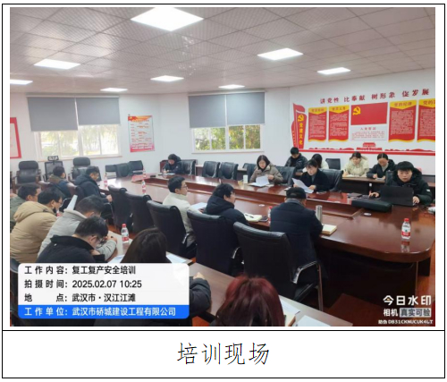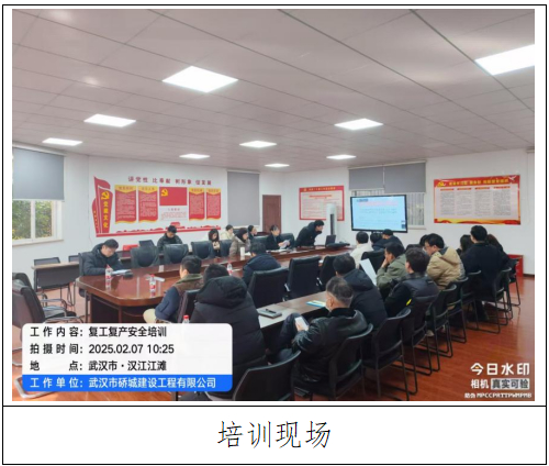 为充分做好节后复工复产准备,实现安全生产良好开局,2月7日上午,硚城建工组织召开2025年节后复工安全培训会。公司分管安全领导、公司各部门、项目经理部参加培训。