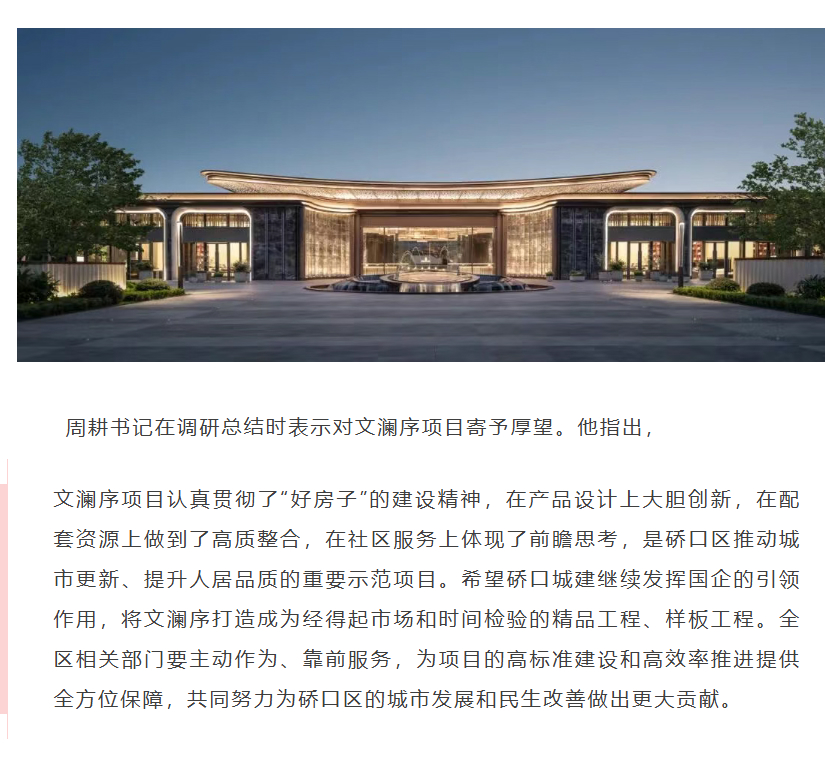 硚口区领导调研硚口城建文澜序项目,以“好房子”典范引领区域高质量发展